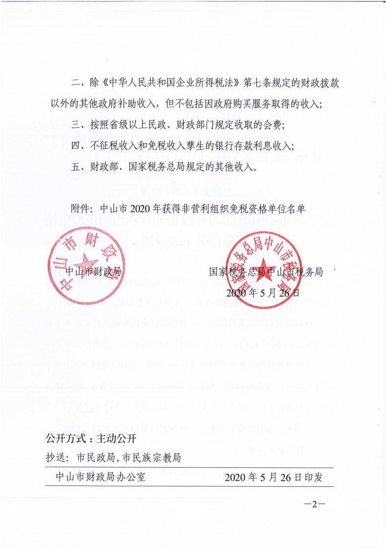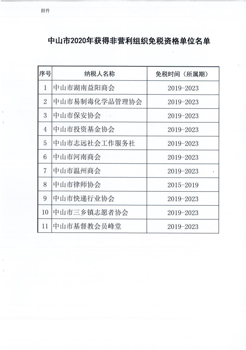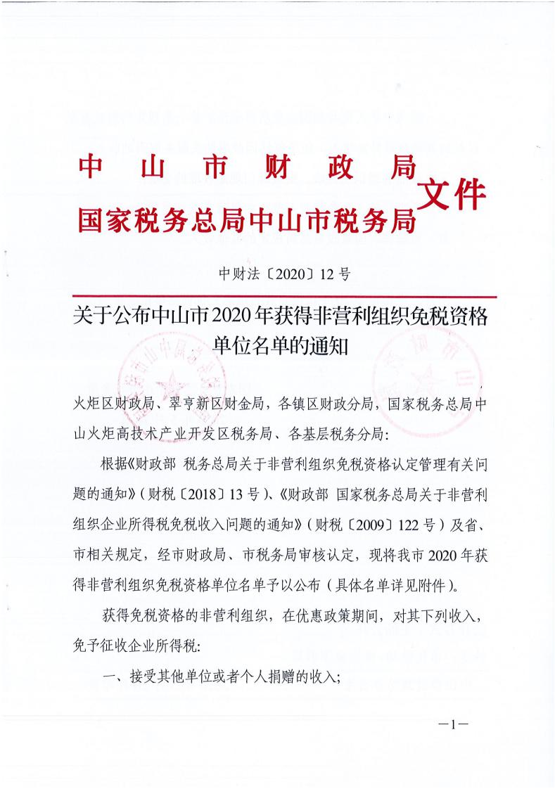 关于公布中山市2020年获得非营利组织免税资格单位名单的通知