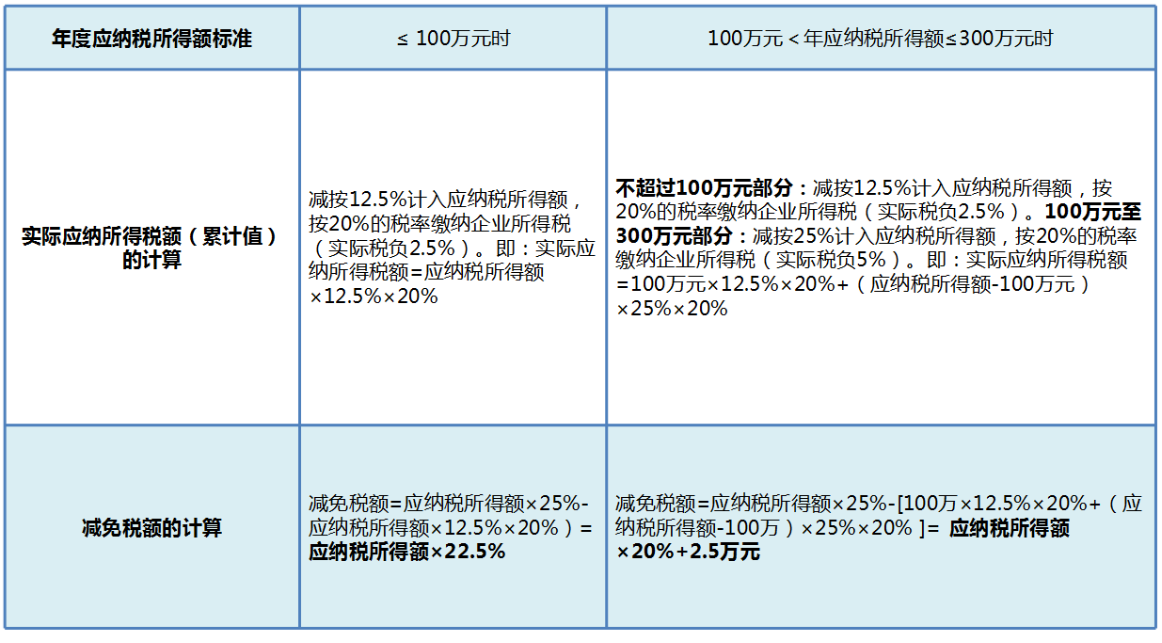 2.减免税款计算。A企业应纳税所得额在100万至300万元时,小型微利企业减免税额计算: