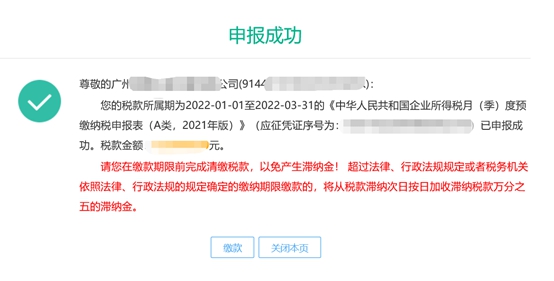 第七步:申报成功,点击“缴款”可完成税款缴纳操作。