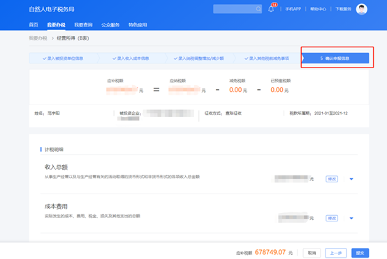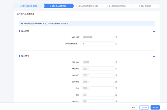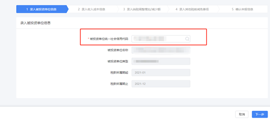 录入被投资单位信息。系统会自动带出被投资单位经营所得申报(A表)相关的收入及纳税信息,如数据有误可进行修改。