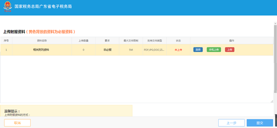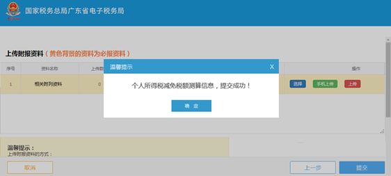 完成测算后,点击“下一步”进入到上传附报资料界面,请您上传相关附件。