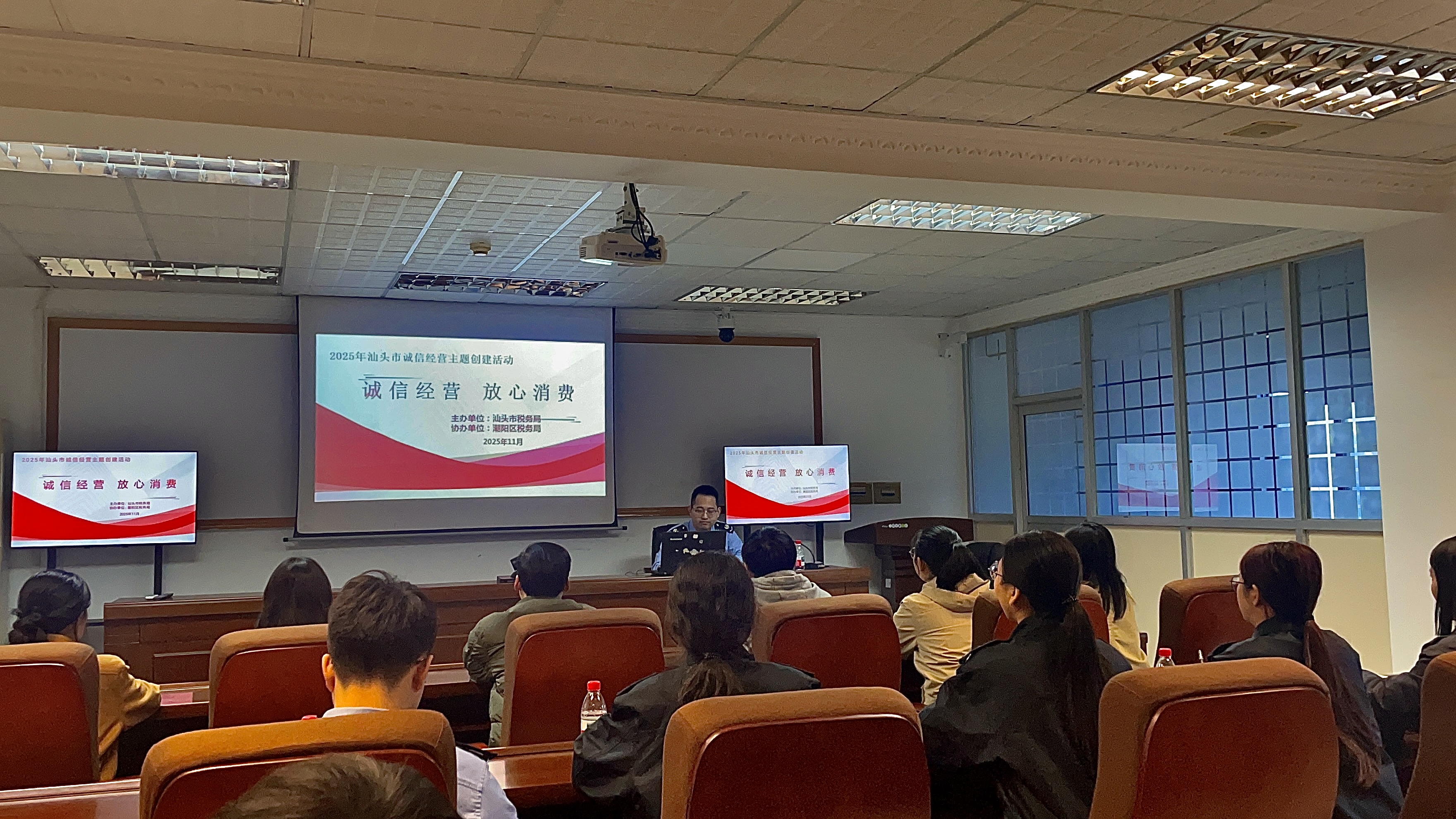 为提升经营者诚信度和消费者满意度,汕头市税务局联合潮阳区税务局于11月28日举办了以“诚信经营 放心消费”为主题的宣传活动。此次活动旨在增强纳税人诚信纳税意识,维护消费者合法权益,促进市场公平竞争。
