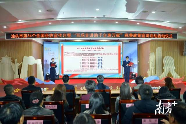 法治公平是最好的税收营商环境。为进一步引导各类经营主体尊法学法守法用法,强化依法诚信纳税自觉,推动法治公平成为税收宣传的主旋律,启动仪式上,汕头市税务局发布《“百场宣讲助千企惠万家”税费政策宣讲活动方案》,明确全年在全市范围内铺开100场税费政策宣讲活动,将法治公平理念与助企惠民实践深度融合,构建“横向到产业、纵向到链条”的精准服务体系,推动税费政策“广覆盖”“深赋能”。