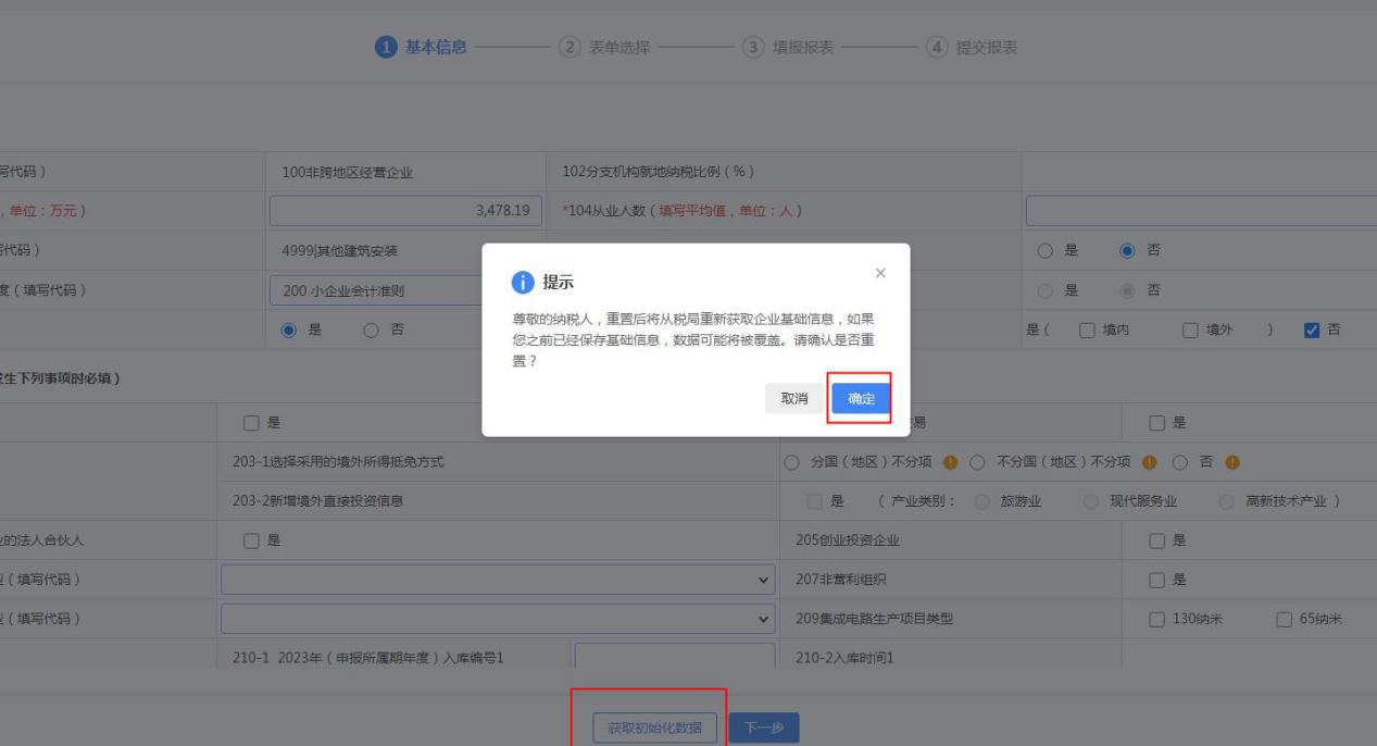 若纳税人变更了行业、经营范围等基本信息,可通过点击【获取初始化数据】更新企业基本信息。