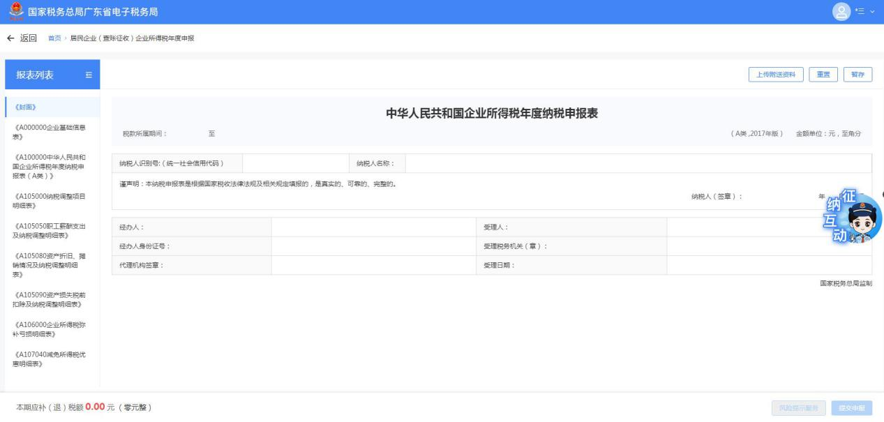 居民企业(查账征收)企业所得税年度申报