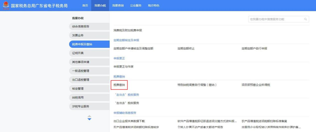 1.【我要办税】-【税费申报及缴纳】-【税费缴纳】。
