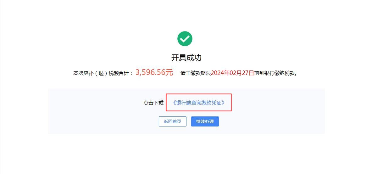 (3)在限缴期内将银行端查询缴款凭证交付付款银行进行扣款,扣款成功后,纳税人凭银行《电子缴税付款凭证》(回单联)进行会计核算。