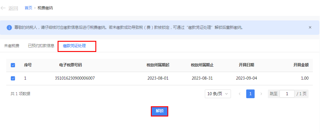 纳税人使用银行端(查询缴款)、银联缴款或第三方支付缴款,如需改变支付方式或因支付超时、密码输入错误、账户余额不足、单笔或当日支付超过银行账户限额等原因导致缴款失败,可进入【税费缴纳】模块,选择【缴款凭证处理】,进行【解锁】操作,解锁成功后,可重新进行缴款。