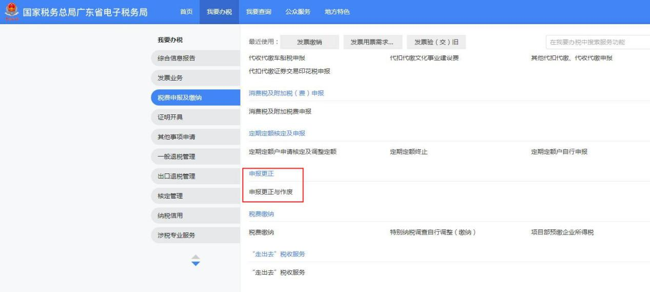 1.【我要办税】 -【税费申报及缴纳】- 【申报更正与作废】。