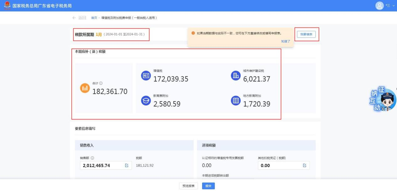 系统会根据开票数据等进行部分数据自动预填,纳税人需要对税款所属期、预填的数据以及税(费)结果进行确认。