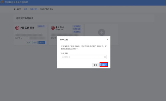 若注销未签订三方协议的存款账户账号报告,点击【注销】,在弹出输入框内,输入注销日期,点击【确定】可以完成。