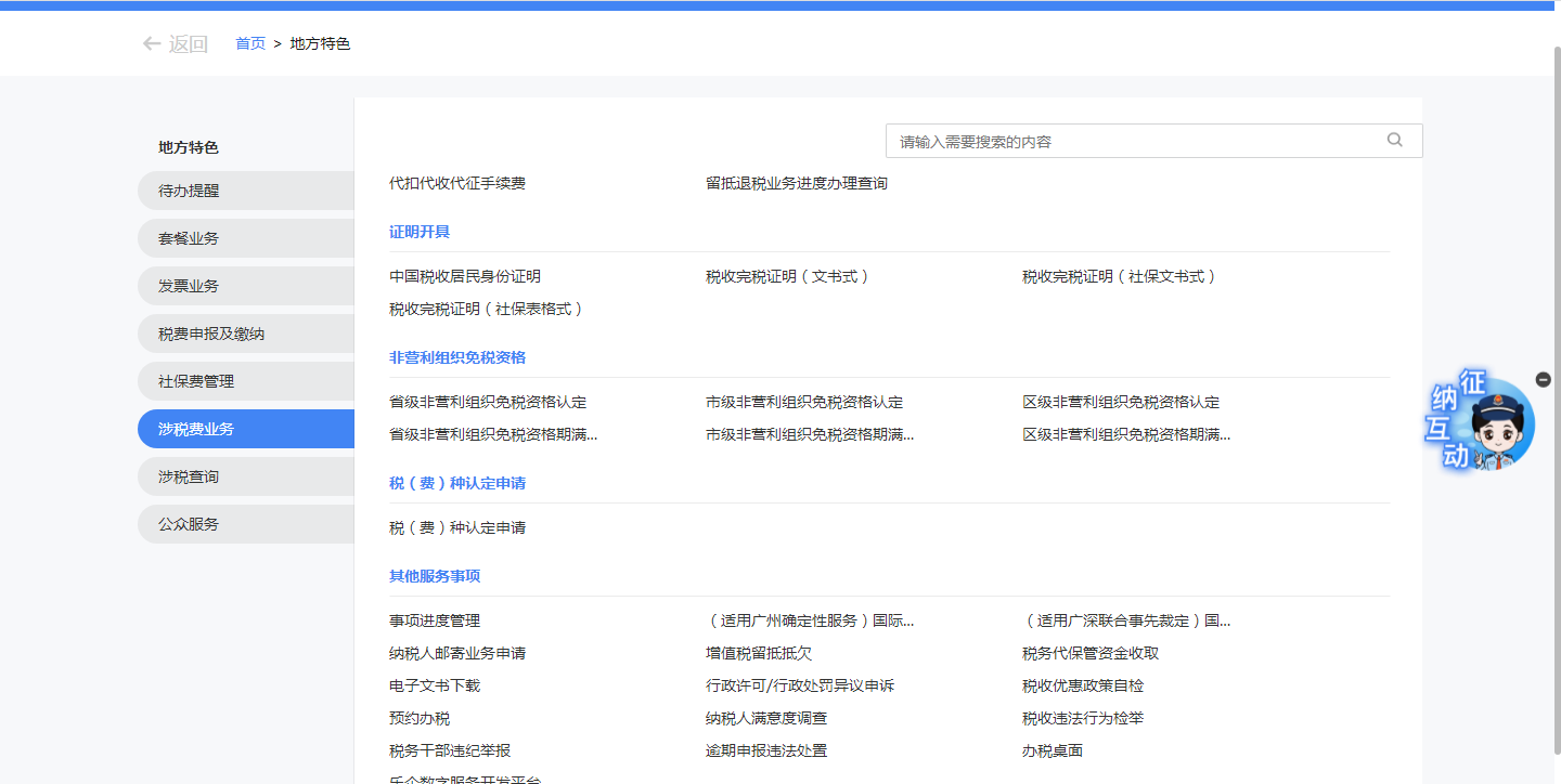 二、线下申请事项的办理进度和历史事项的办理结果查询路径:【地方特色】-【涉税费业务】-【事项进度管理】