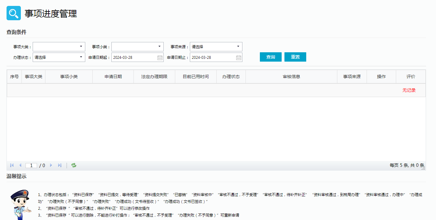 一、线上申请事项办理进度