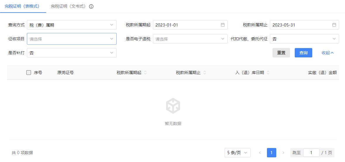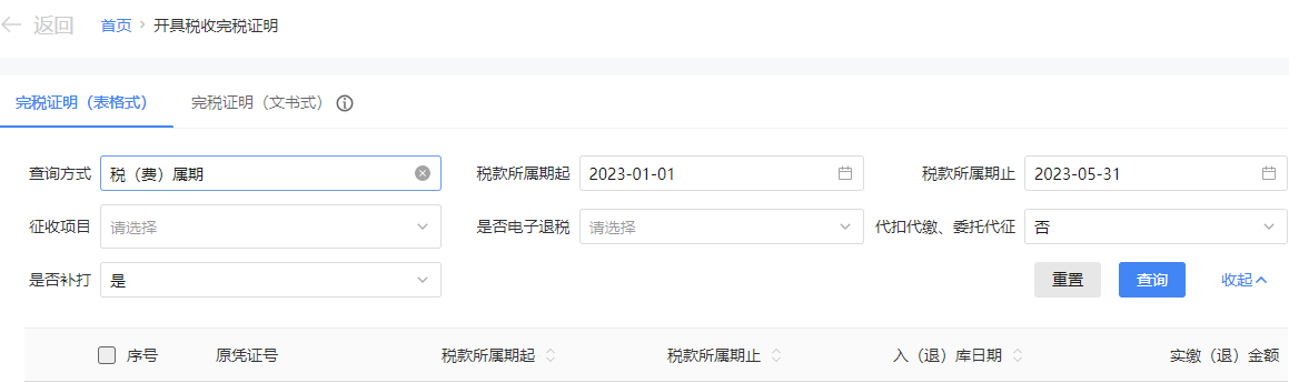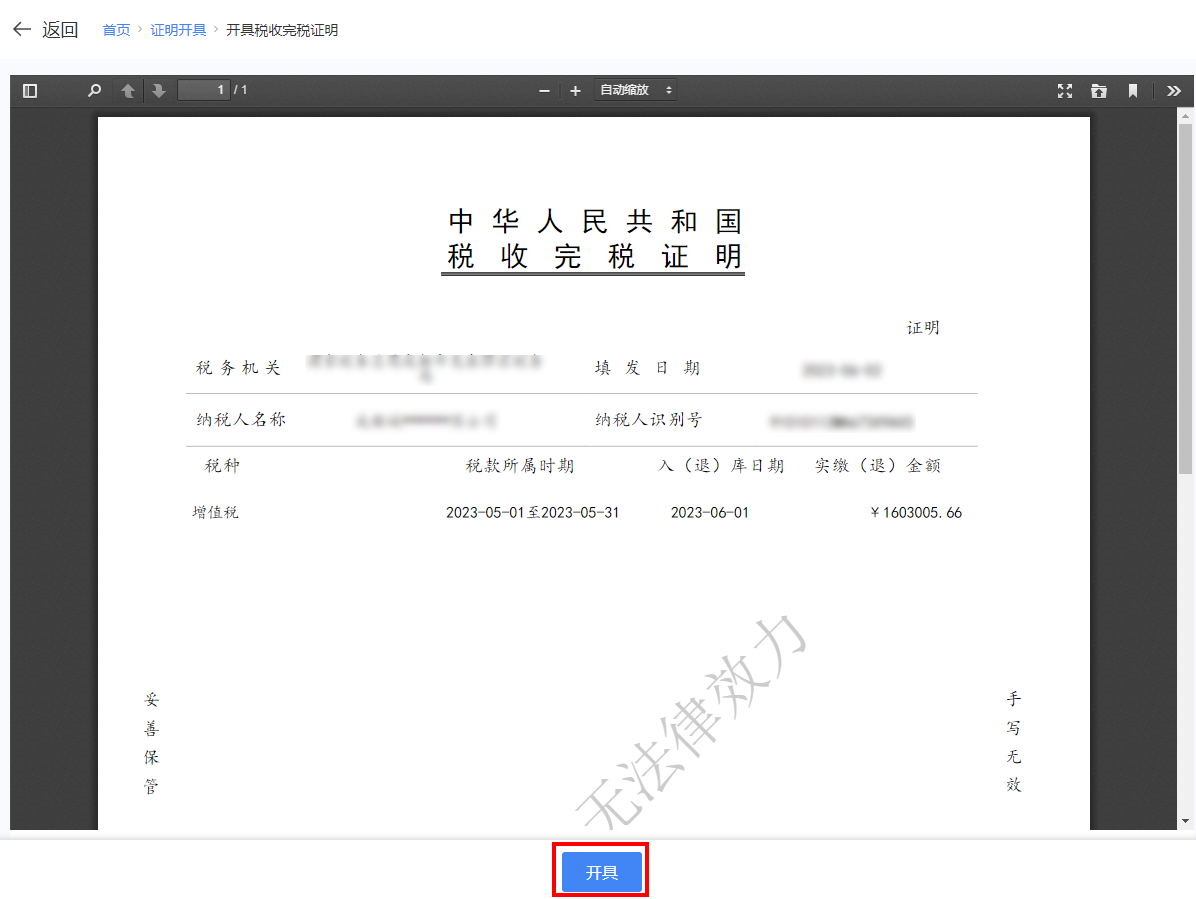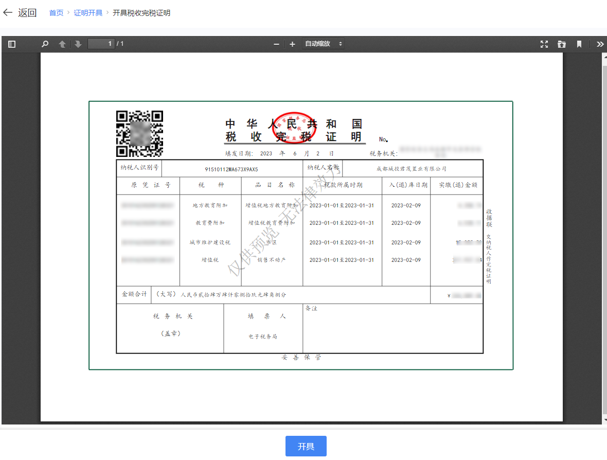 1.开具完税证明(表格式)
