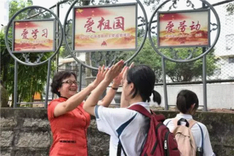 汕头日报记者在现场注意到一幕幕真情暖人心的画面:在金中校门口保安亭,一位送考的妈妈与亲爱的女儿深情拥抱,轻轻地亲吻孩子的脸颊,“加油,妈妈相信你能行!”女儿举起手回报妈妈一个坚定的拳头,自信地步入考场;两名淡定的男生看到站在送考队伍前沿的张焕辉老师,一下子跑了过来,猛地来一个大熊抱;几名女生远远望见送考中的班主任,燕子般地“飞”了过来,紧紧抱住亲爱的老师。