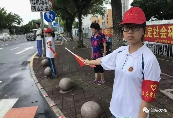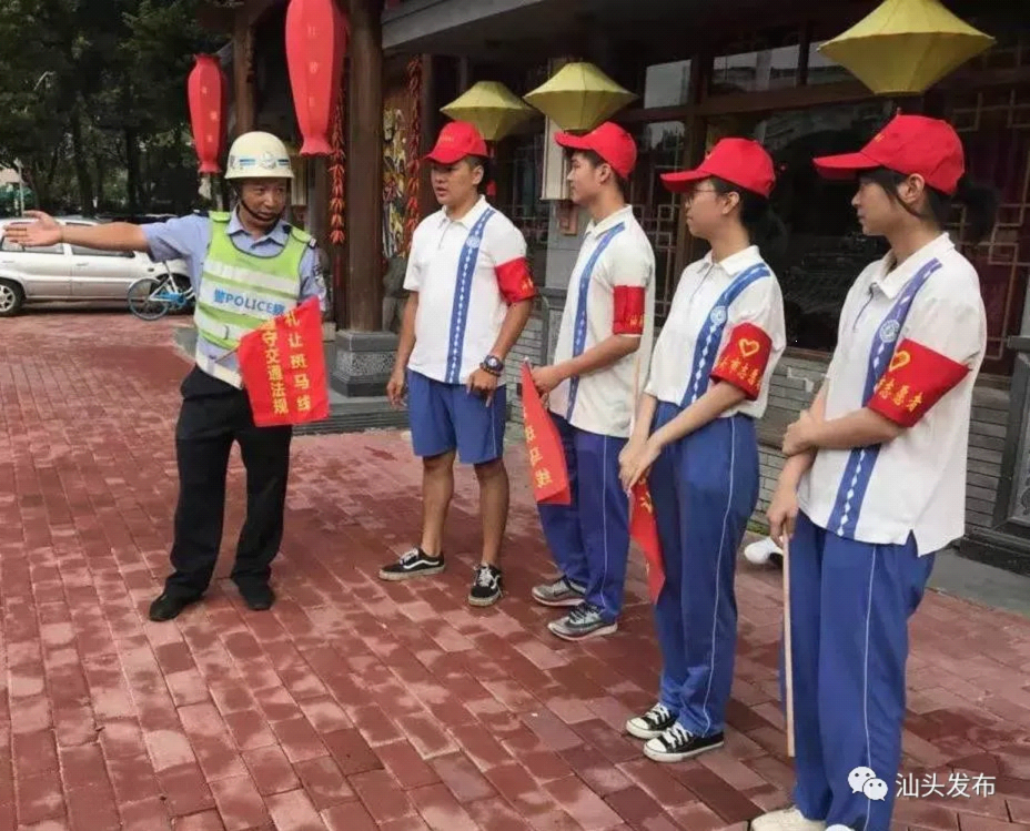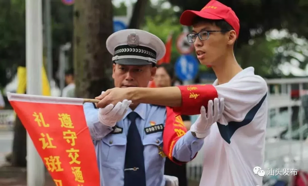 组织3万名“准大学生”利用暑期到中心城区主要路口协助交警维持交通秩序,劝导市民遵守交规,以实际行动践行文明、传播文明,这是汕头在全省首创的体验式志愿服务活动,得到了省道路交通安全联席会议办公室的充分肯定并在全省21个地级市中推广。为确保同学们安全、有效开展志愿服务,市公安交警部门抽调经验丰富的业务骨干开展站位、交通劝导手势等岗前培训,提高大家的交通劝导及自我防护能力。