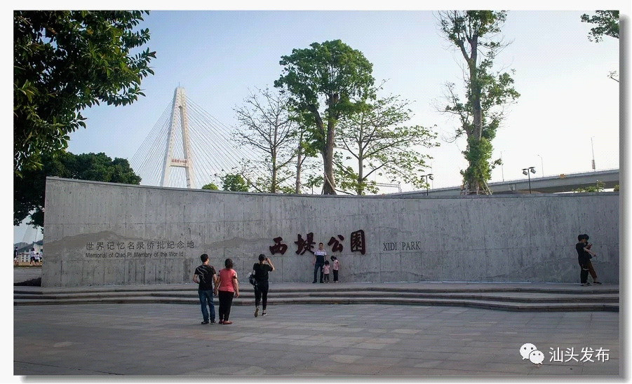 另外,公园中还有一个景点——过番纪念柱,是建公园的时候专门设立的。西堤公园负责人陈宁邑说,1930年以前,汕头的海岸线是在海平路,西堤公园是当时12座过番码头的所在地,统一叫做西堤码头。华侨过番从这里出去的人最多,这里也是过番的人最后一眼看到的家乡景象,所以才在这里建设过番纪念柱。据不完全统计,到1949年前,大概有585万人次的潮汕人在这里过番。