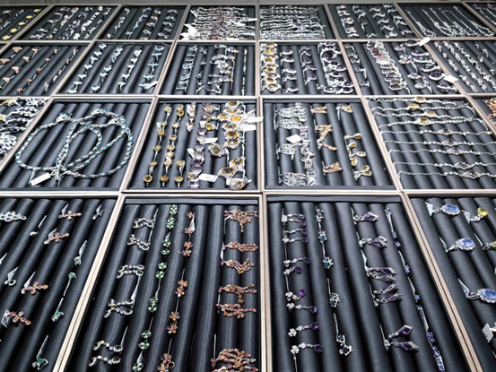 交易市场内琳琅满目的彩色宝石饰品。新华网 卢鉴 摄
