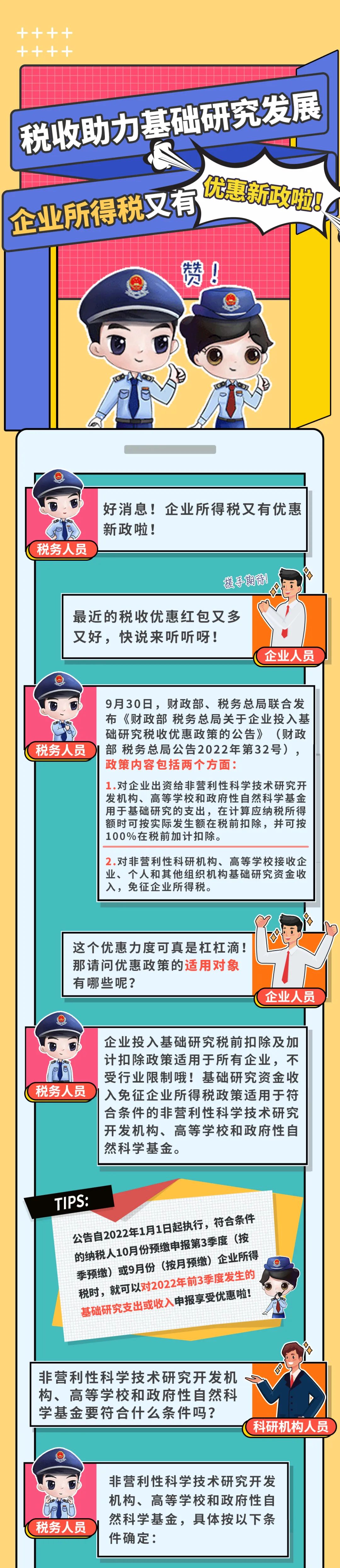 财政部 税务总局关于企业投入基础研究税收优惠政策的公告(财政部 税务总局公告2022年第32号)
