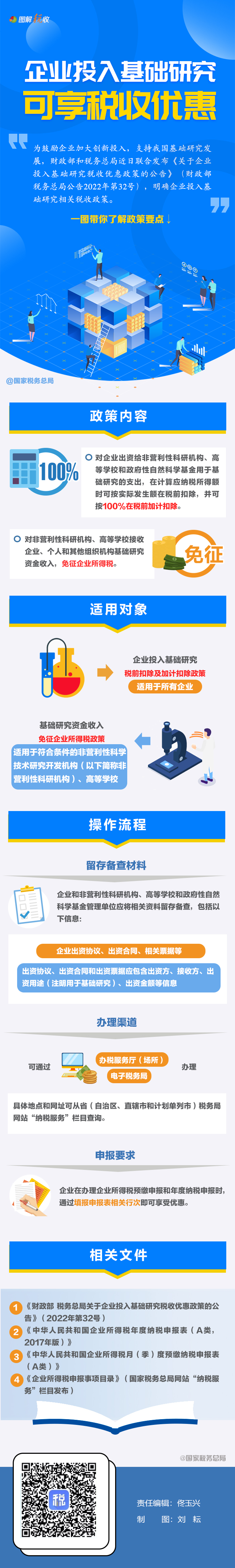 财政部 税务总局关于企业投入基础研究税收优惠政策的公告(财政部 税务总局公告2022年第32号)