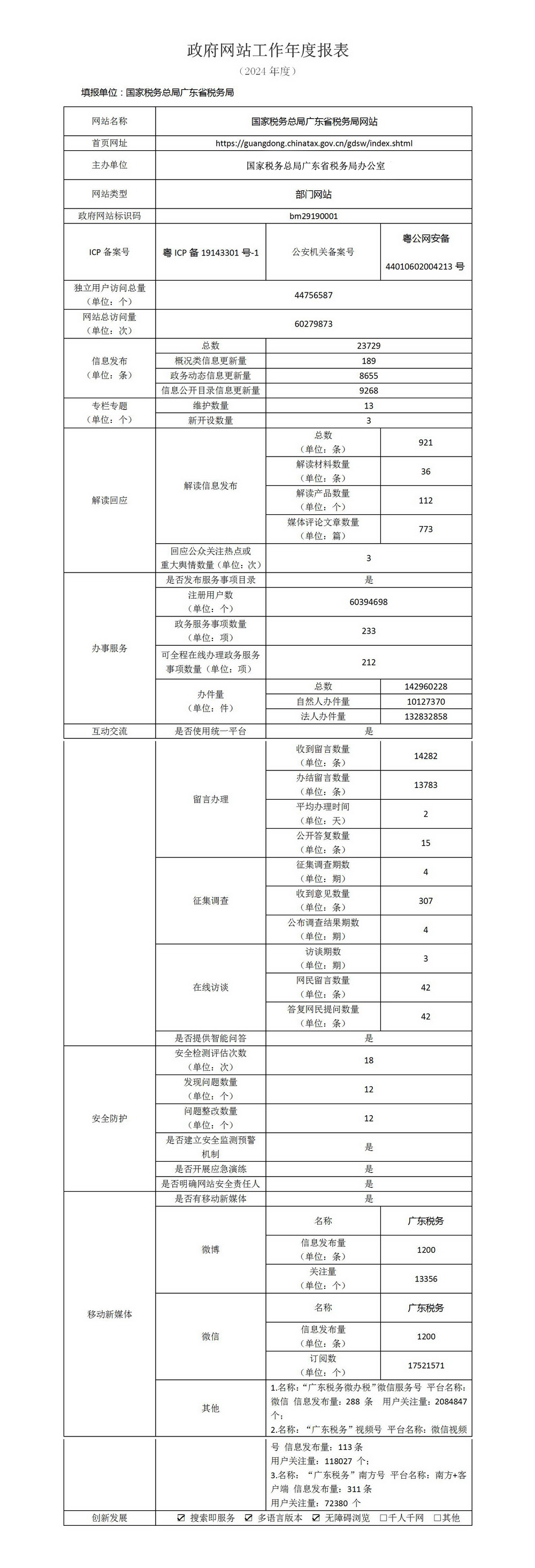 2024年度国家税务总局广东省税务局政府网站工作年度报表