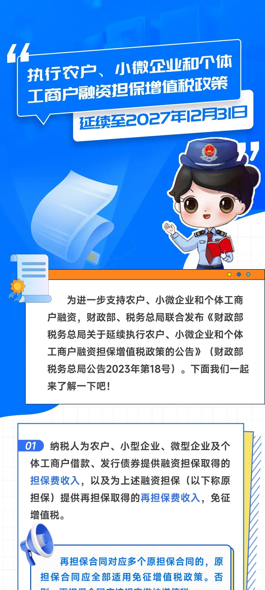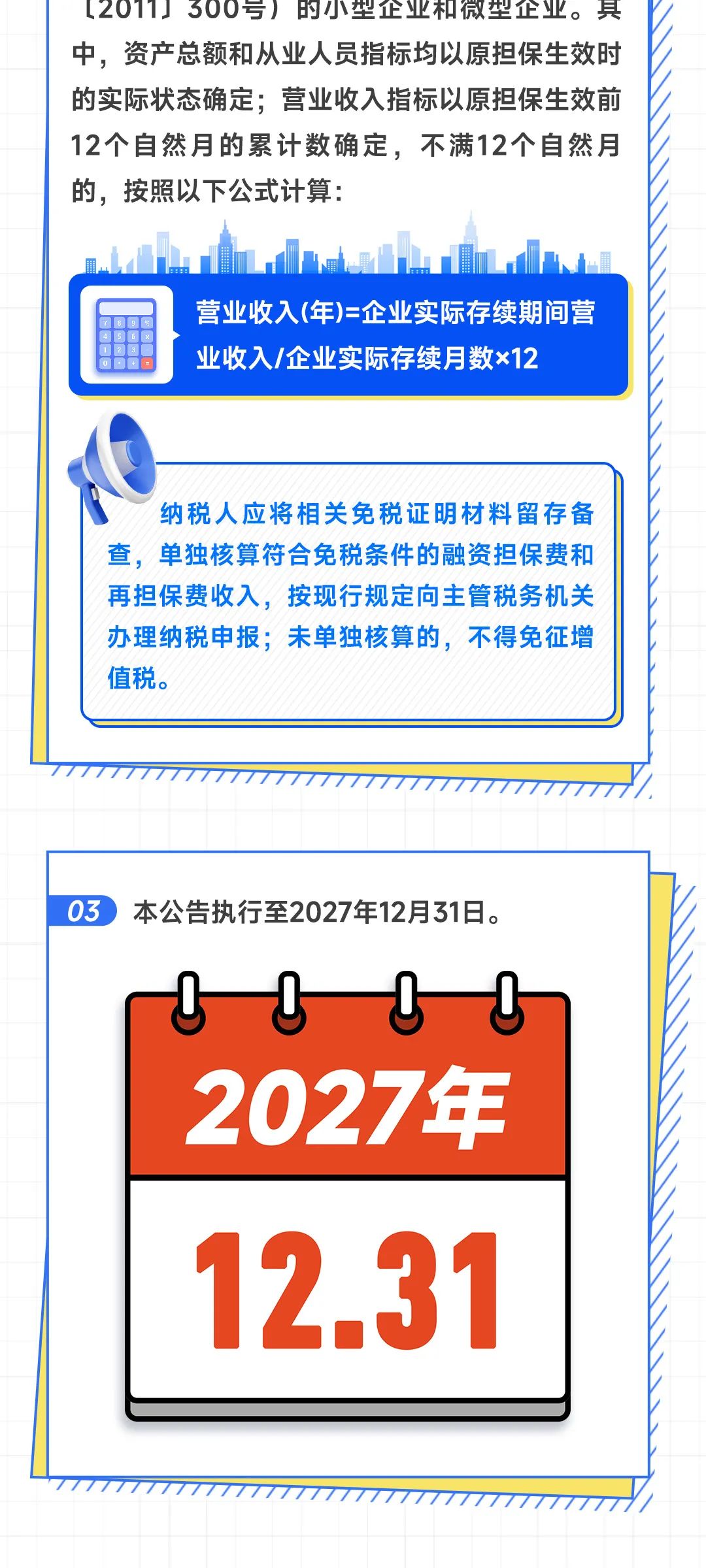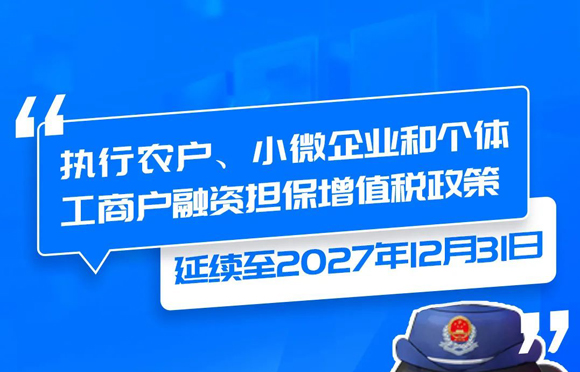 执行农户、小微企业和个体工商户融资担保增值税政策延续至2027年12月31日