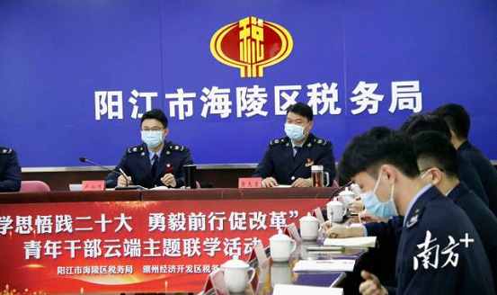 此次联学活动以“学思践悟二十大 勇毅前行促改革”为主题,两地税务40余名青年理论学习小组成员以远程视频连线、实景直播的形式相聚“云端”,展开了一次别开生面的对话。