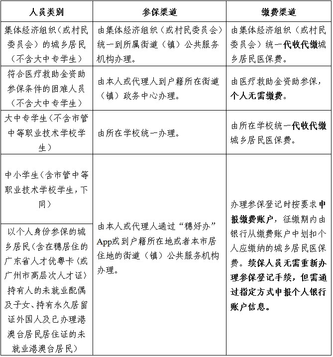 中小学生(含市管中等职业技术学校学生)不同于往年在学校统一参保的形式,已办停保或之前从未参保的人员需通过以下方式进行办理:一是在“穗好办”App进行网上申办;二是前往孩子的户籍所在地或本市居住地街道(镇)现场办理参保登记手续。续保人员无需重新办理参保登记手续,医保部门将与教育部门信息对碰并自动校对所有中小学生参保身份数据,信息对碰校对后,由银行代扣医保费。
