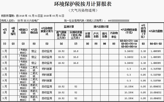 五、应纳税额:应税大气污染物、水污染物的应纳税额=按照污染物排放量折合的污染当量数×具体适用税额;应税固体废物的应纳税额=固体废物排放量×具体适用税额;应税噪声应纳税额=超过国家规定标准的分贝数对应的具体适用税额