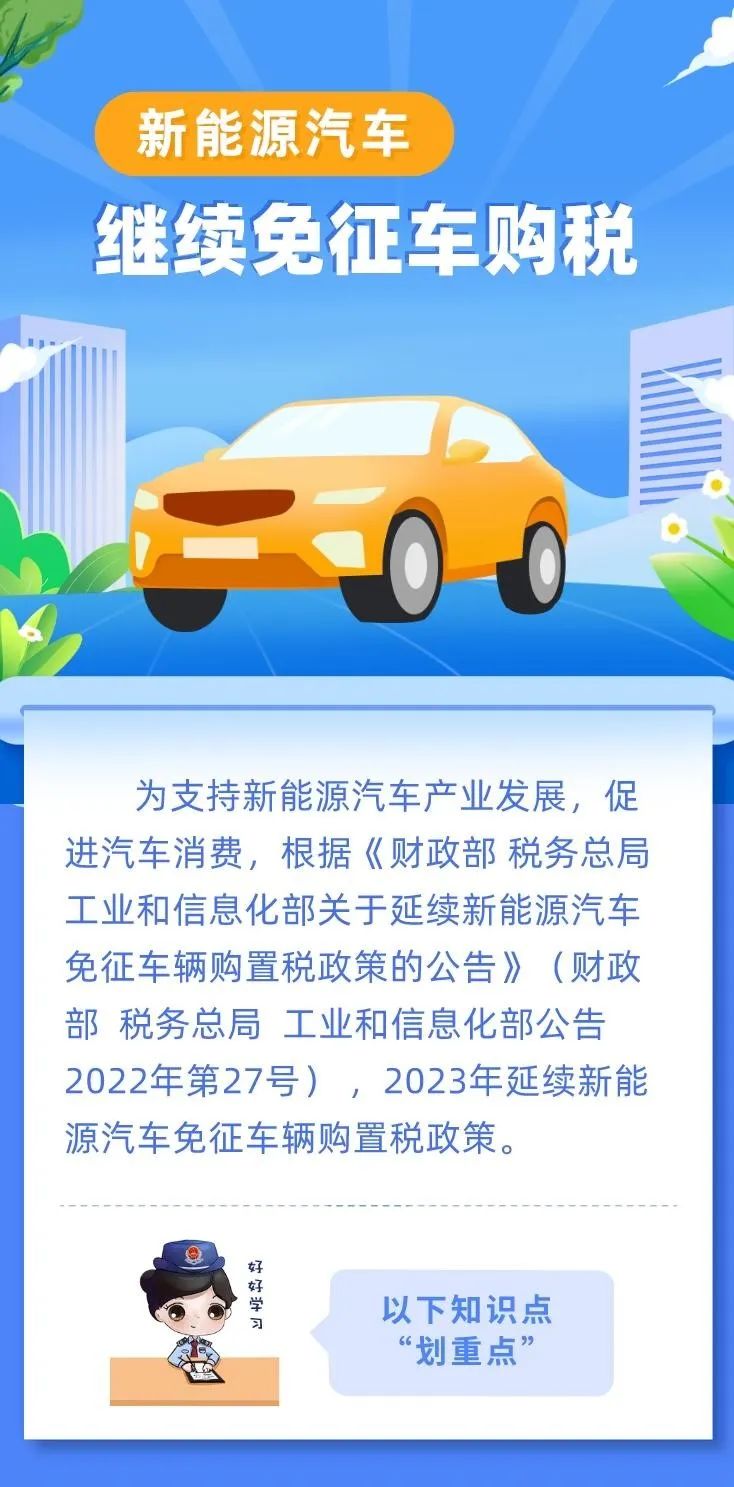 @亲爱的车主们,新能源汽车继续免征车辆购置税!
