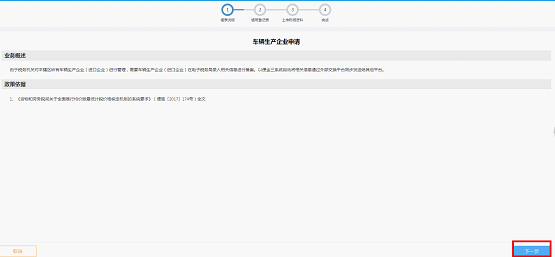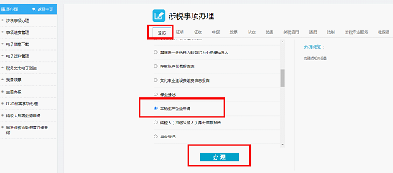 具体流程:(企业身份进入)我要办税>事项办理>涉税事项办理>登记>车辆生产企业申请