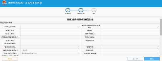 4.点击“下一步”,进入“填写登记表”界面。纳税人可根据页面提示,根据实际情况录入信息。其中,具有“*”标识的为必录项。