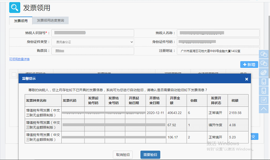 业务说明:纳税人在发票票种核定的范围(发票的种类、领用数量、开票限额)内领用发票。