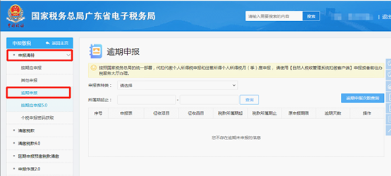 具体流程:(企业身份进入)我要办税>税费申报及缴纳>申报清册>逾期申报