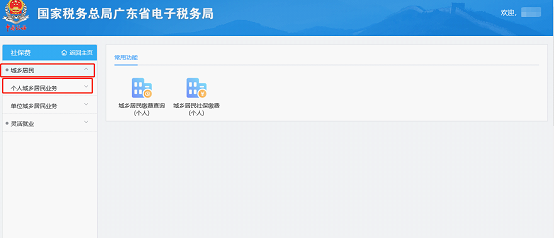 自然人身份登录电子税务局,在【我要办税】→【社保费】→【城乡居民】,进入社保费系统。