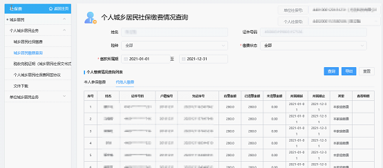 个人城乡居民社保费缴费情况查询(本人参保缴费)