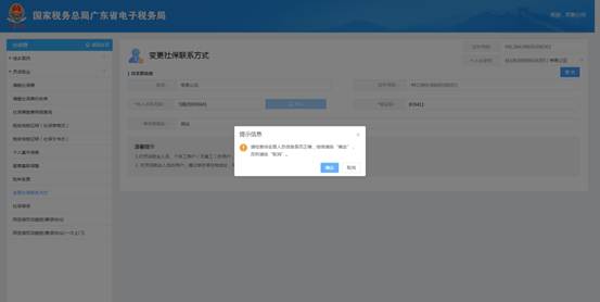 c) 准确输入手机收到的验证码后,点击【提交】按钮,系统弹出提示信息对话窗:“请检查待变更人员信息是否正确,继续请按【确定】,否则请按【取消】;