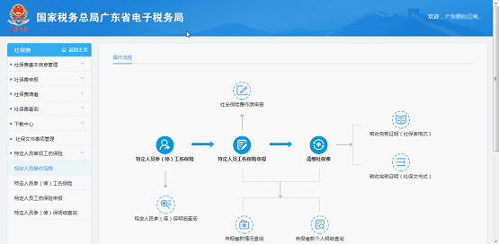 具体步骤:企业身份登录电子税务局,在【我要办税】→【税费申报及缴纳】→【社保费管理】→【特定人员单项工伤保险】-【特定人员操作流程】,进入特定人员操作流程界面。