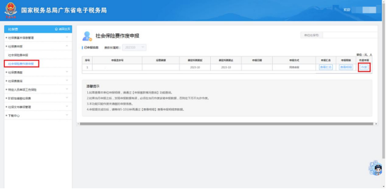 2.功能菜单依次选择【社保费管理】->【社保费申报】->【社会保险费作废申报】,点击进入社会保险费作废申报界面;系统自动带出单位本月已申报社保费的记录信息(显示在【已申报信息】)。