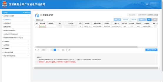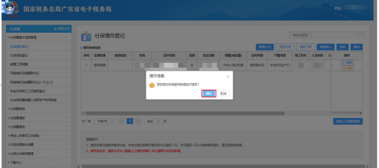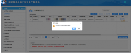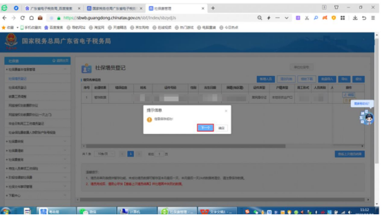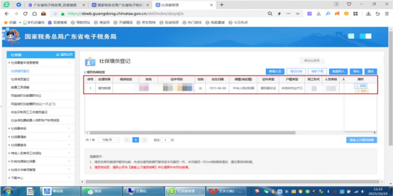 6.点击【确定】按钮,提示信息页面关闭,新增的人员信息暂时保存在【增员名单信息】列表。