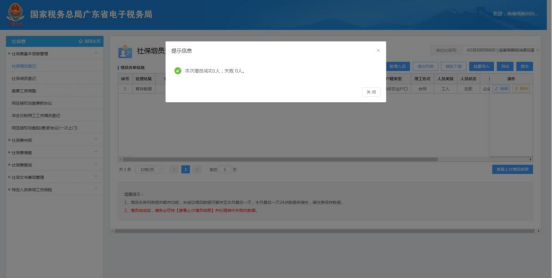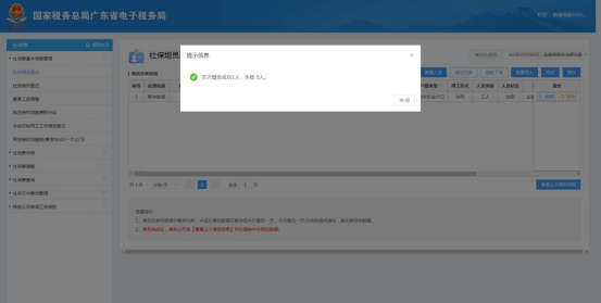 4.系统弹出增员成功提示信息,此时批量导入增员成功。
