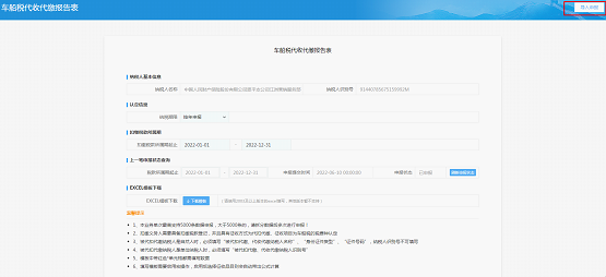 3.点击【申报清册】-【其他申报】,选择代收代缴车船税申报表(大数据),点击【填写申报表】