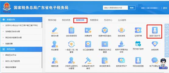 2.点击-【我要办税】-【税务行政许可】