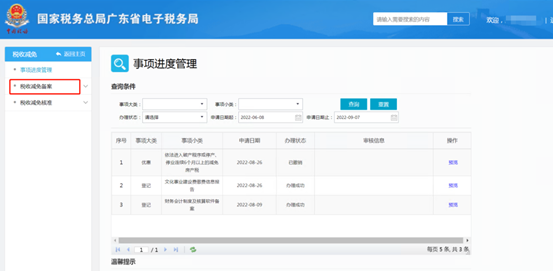 2.点击【税收减免备案】