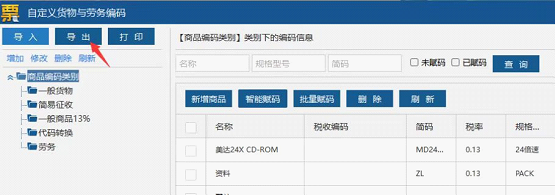导出路径:系统设置——基本编码设置——自定义货物与劳务编码/客户编码——导出