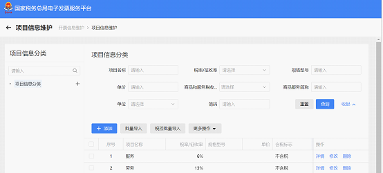 点击【项目信息维护】进入界面,点击【税控批量导入】按钮。