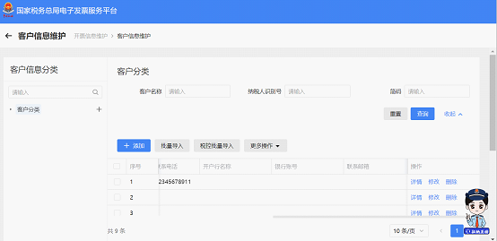 点击【客户信息维护】进入界面,点击【税控批量导入】按钮。