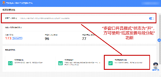 功能菜单依次选择【开票业务】-【纸质发票业务】—【纸质发票分配】(多窗口开具模式需保持开启状态)
