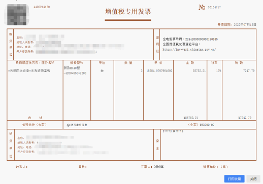 点击“打印发票”按钮,完成发票打印即可。