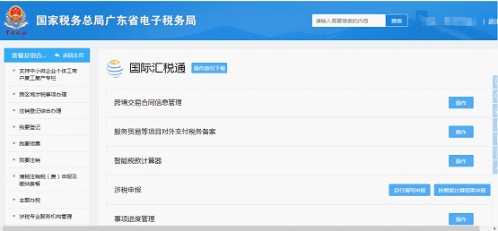 2.在【国际汇税通】操作界面里,选择需要办理的业务